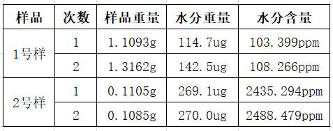 3、仪器会自动记录滴定过程中的碘量,并根据预先设定的计算公式计算出样品中的水分含量;
