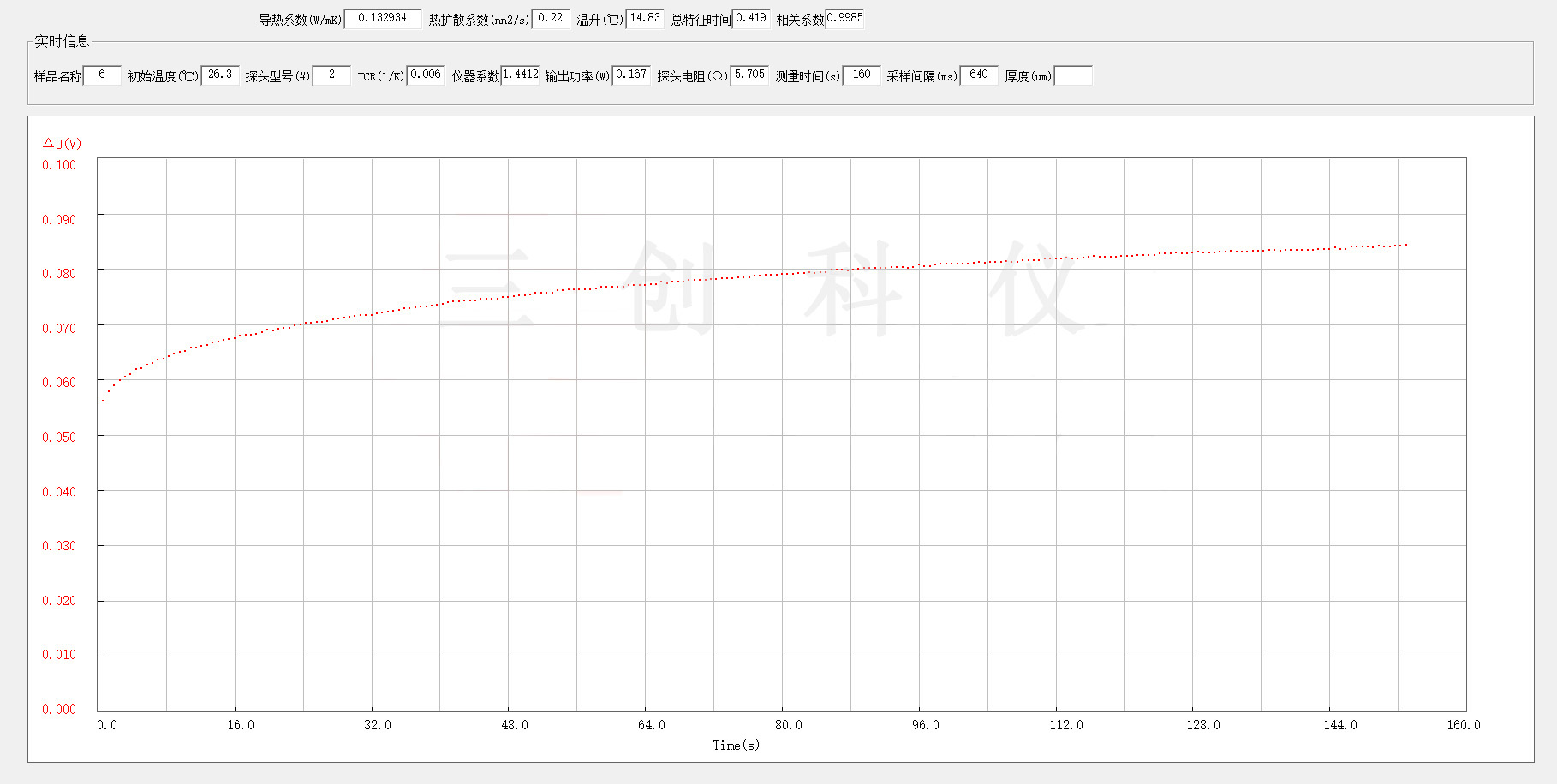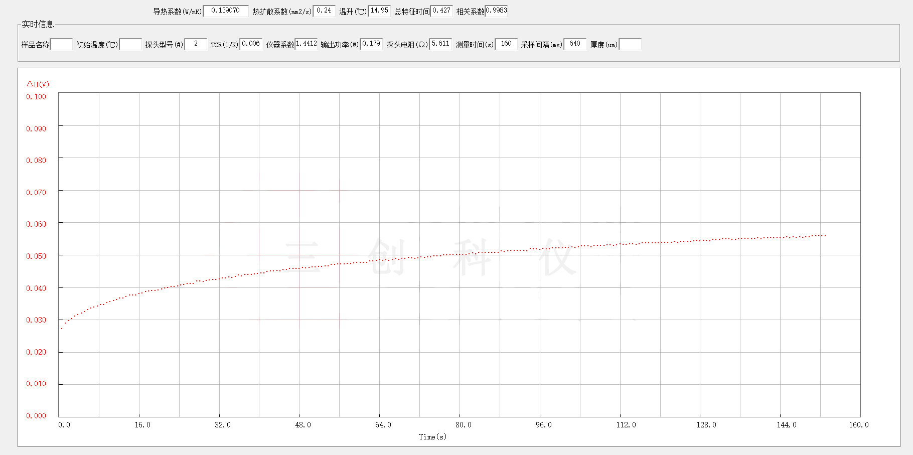 本次实验采用了瞬态热源法,这种测量方法是通过测量材料在瞬间受热或冷却时的温度变化来确定导热系数。
