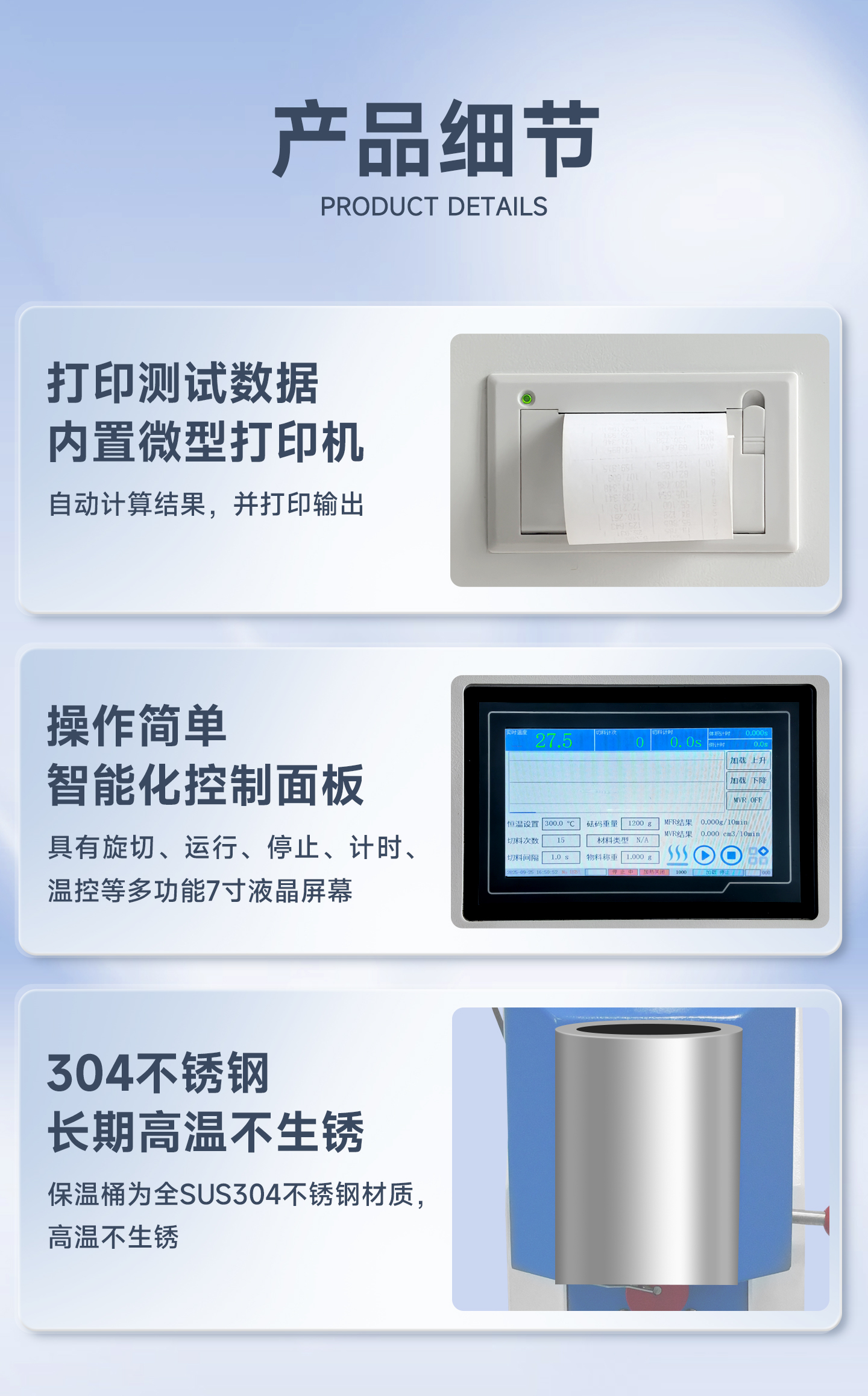 厦门市三创科仪检测设备有限公司是热分析、塑料类检测设备制造商,提供塑料橡胶整套实验室解决方案。电动熔融指数仪产品有品牌和质量保证,三创科仪为您全方面介绍电动熔融指数仪相关技术参数、性能特点、用途、标准、选型、作用、图片、规格型号、使用方法、计算公式、外形尺寸、工作原理、产品说明书、操作规程、安装维护及产品示意图;为广大用户提供高品质、高性能、高标准、高寿命、价格优惠的电动熔融指数仪。